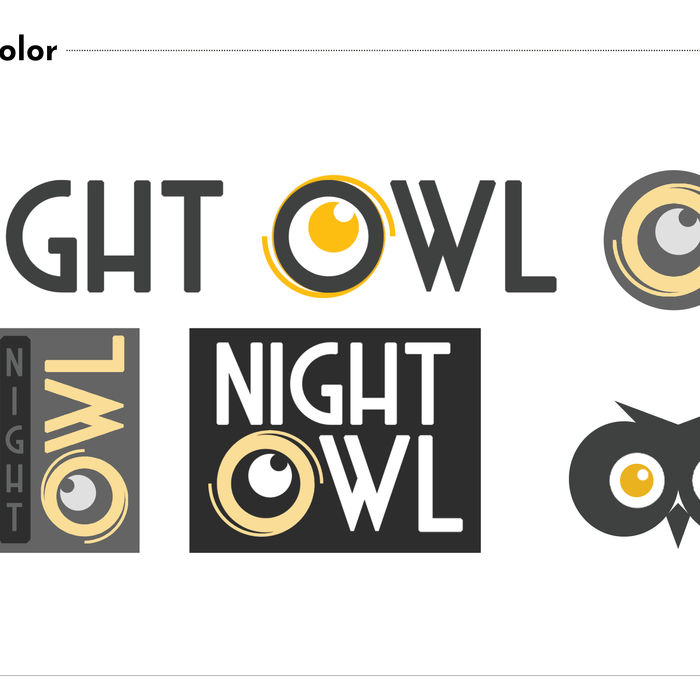 The Night Owl identity blends the bold geometry of Art Deco with the magnetic energy of nightlife culture. The thick, stylized letterforms convey confidence and modern luxury, while the crescent-shaped “O” doubles as an owl’s eye—symbolizing nocturnal allure and sharp focus. The black and gold palette evokes sophistication and the shimmer of midnight city lights, grounding the brand in both strength and sensuality. Together, the typography, colors, and minimal iconography communicate a premium, after-dark experience that is equal parts elegance and edge.